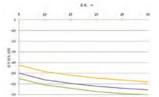 備注:天線增益表示定向天線輻射集中程度的參數(shù))不同頻率(26 10 6 GHZ)、同一天線和介電常數(shù)及距離增長的接受信號(hào)圖如下所示: