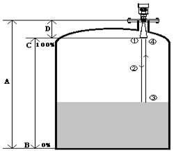 ①時間1:產生初始脈沖②時間2:沿喇叭天線向下行進,速度C(光速)③時間3:脈沖遇到介質表面發生反射④時間4:反射脈沖被接收,并被處理器記錄⑤脈沖信號從被發射到被接收之間的時間差T,與基準面到介質表面的距離D成正比:D=C×T/2⑥測量的基準面是: 螺紋底面或法蘭的密封面⑦ A:量程 B:低位 C:滿位 D:盲區⑧運行時,可達到Z高料位不能進入測量盲區D 技術優勢:? 采用高達26GHz的發射頻率? 波束角小,能量集中,具有抵干擾能力,增加了測量精度與可靠性? 測量盲區小,對于小罐測量也會取得作用? 波長短,對于小顆粒介質與傾斜的介質表面的物位測量效果好? 測量靈敏、刷新速度快、天線尺寸小、安裝簡便、免維護? 非接觸式測量,無磨損,可測量液體,固體介質的物位? 幾乎不受溫度、壓力、水蒸汽、泡沫、粉塵等復雜工況的影響? 采用兩線制回路供電的功能,供電電壓和輸出信號通過一根兩芯電纜傳輸,節省成本? 采用微處理器和回波處理可適用于復雜工況? 發射功率J低,可安裝于金屬、非金屬容器內,對人體環境均無傷害? 帶有按鍵的顯示屏可方便設置儀表的參數可應用的行業:化工與石化、電力、 鋼鐵及冶金、 礦產、造紙及紙漿、水及污水、食品與飲料、 制藥 。可應用的工況:中間料倉、儲倉、料斗、儲罐、過程罐、攪拌罐、其他。主要參數:應 用: 耐溫、耐壓、輕微腐蝕的液體頻率范圍: 26GHz測量范圍: 0-30m精 度: ±3mm介質溫度: -40...250℃過程壓力: -0.1...4.0Mpa過程連接: 螺紋、法蘭防爆等J: Exia II CT6;Exd II CT6防護等J: IP67信號輸出: 4...20mA/HART(兩線/四線)RS485/Modbus