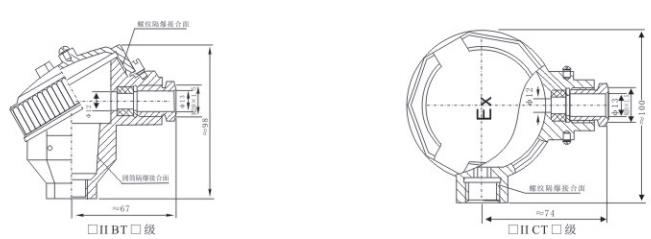 隔爆熱電阻是利用物間隙隔爆原理,設計具有足夠強度的接線盒等部件,將所有會產生火花、電弧和危險溫度的零部件都密封在接線盒腔內,當腔內發生爆炸時,能通過接合面間隙熄火和冷卻,使爆炸后的火烙和濯度傳不到腔外,從而進行隔爆。