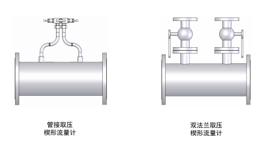 楔形流量計同其它差壓流量儀表一樣,其理論基于封閉管道中能量相互轉化的伯努利定理和流體流動連續性定律:差壓與流量是一個開方關系,通過測量差壓,就可以測量出管道流體流量的大小。